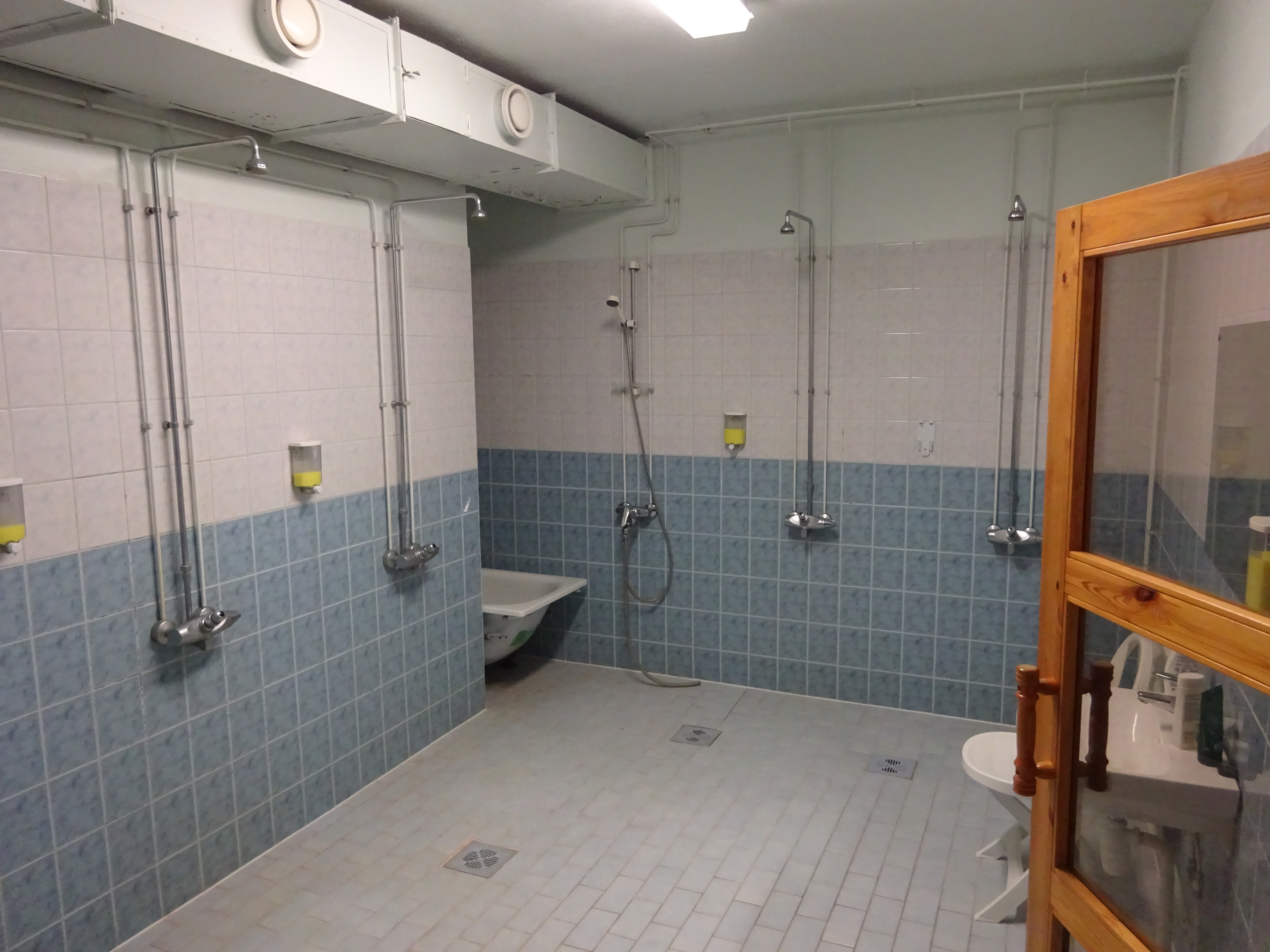Pesuhuoneessa on kuusi suihkua.
